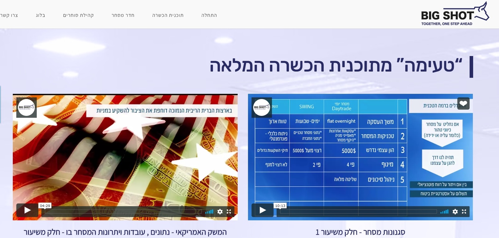 לזמן מוגבל: קבל גישה ל"טעימה" (סרטוני תוכן וחדר המסחר) מתוך תוכנית ההכשרה המלאה של 'ביג שוט' למסחר בשוק ההון האמריקאי